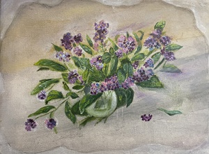 Bloemen in een vaas, peren en druiven en ook collages van objecten vormen het decor van haar stillevens. De kleuren zijn zo echt dat je de bloemen water wilt geven en het fruit wilt eten.