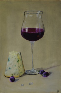 2021wijn in glas met zoute schimmelkaas