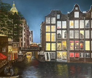 2025het beeld van Amsterdamse grachtenpanden soepelen in het water.